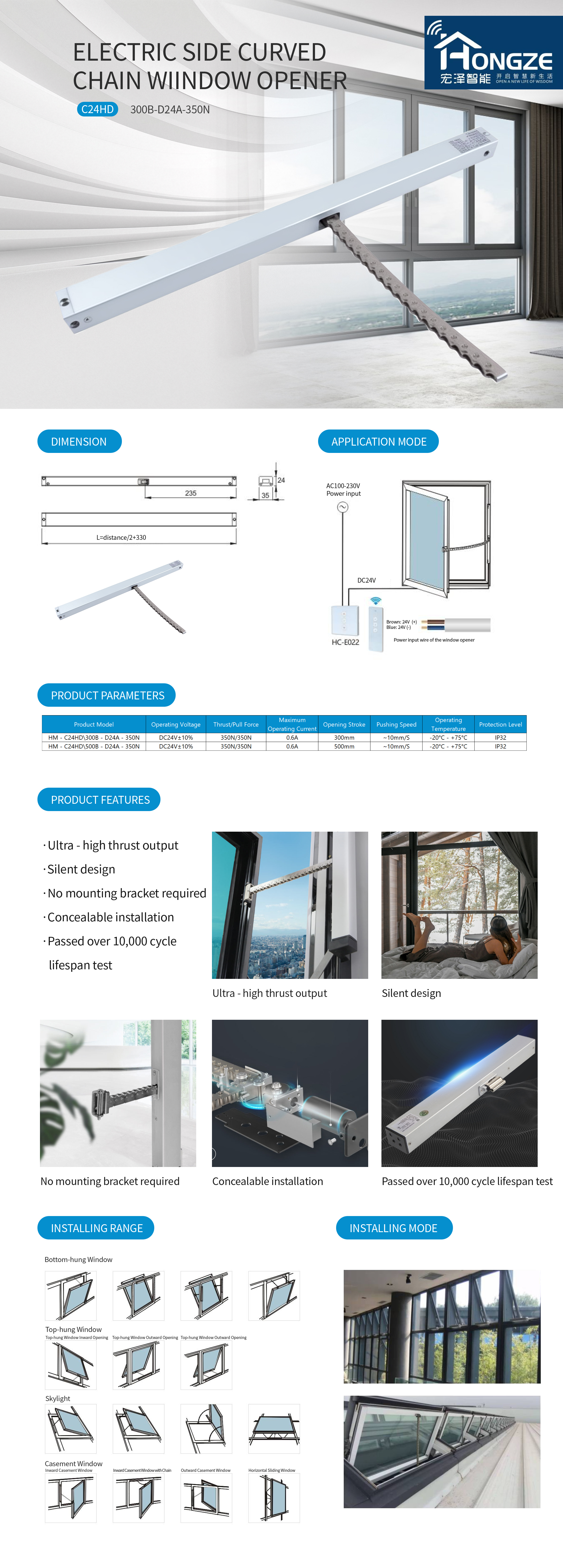 Electric Side Curved Chain Wiindow Opener